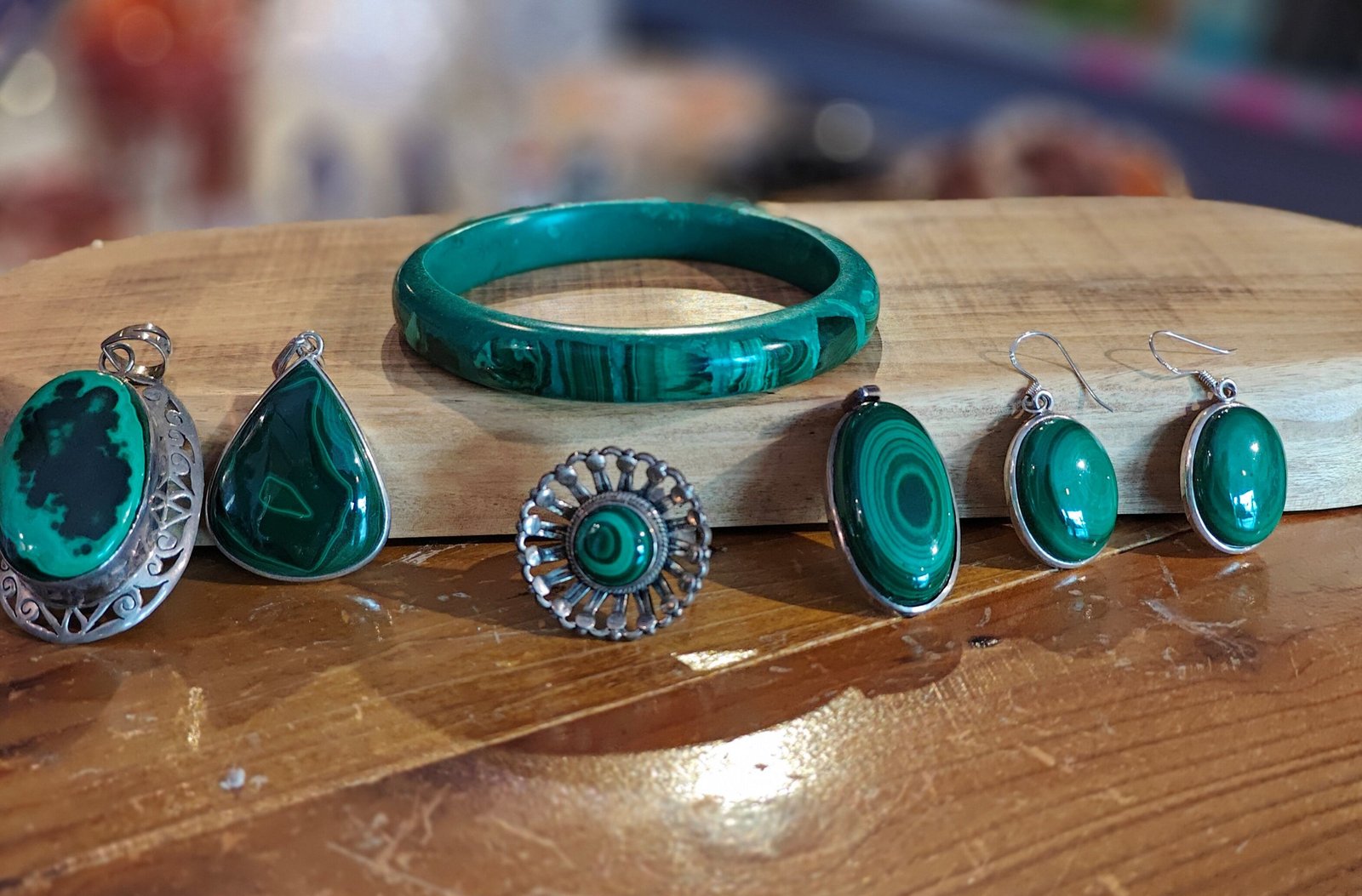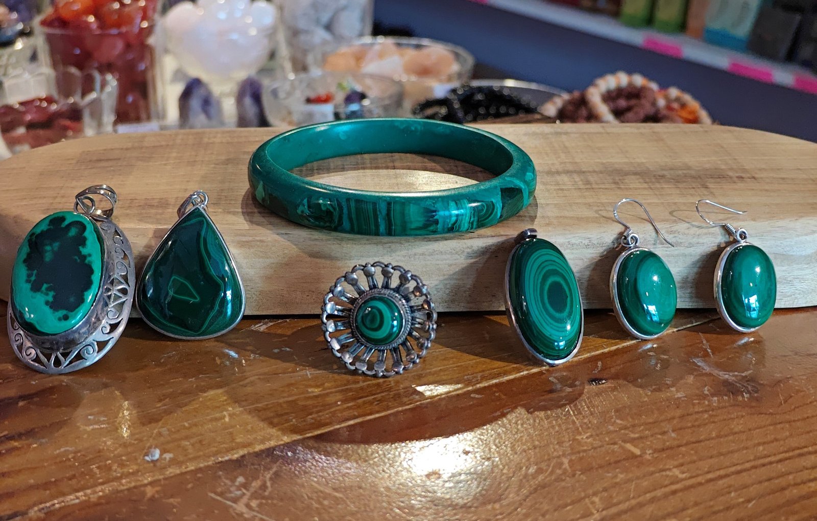 Malachite Pendant, Earings and Ring