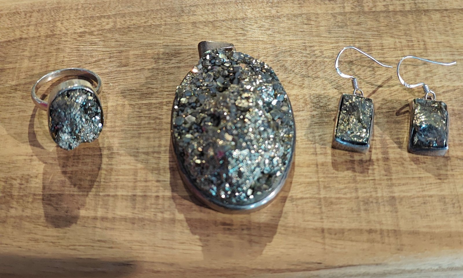 Pyrite Pendant, Earings and Ring