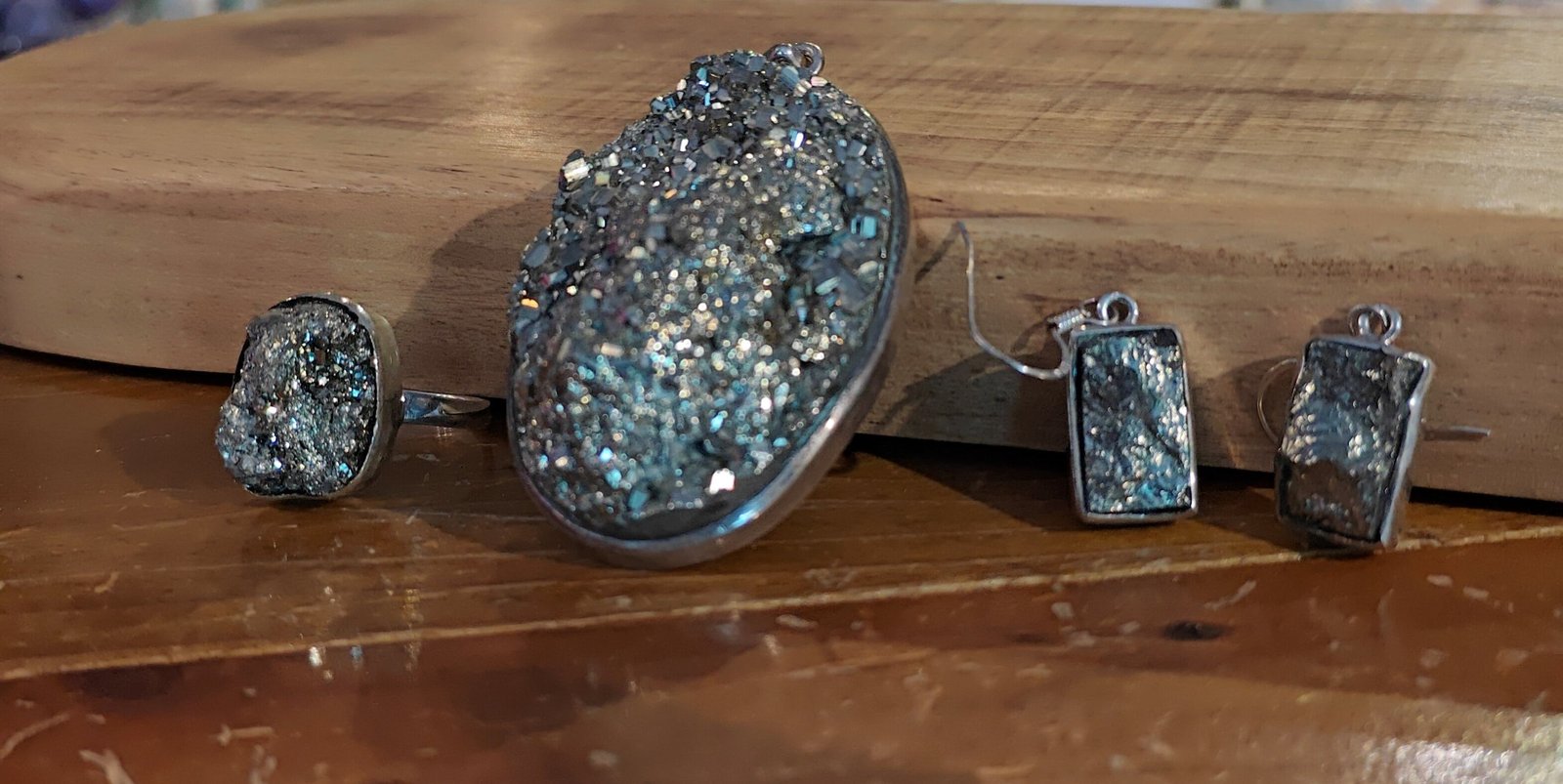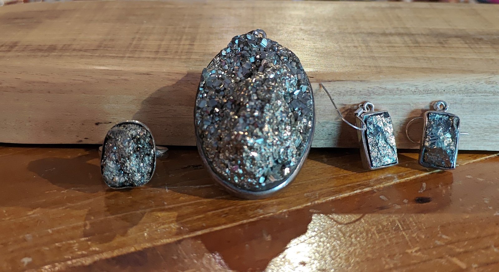 Pyrite Pendant, Earings and Ring